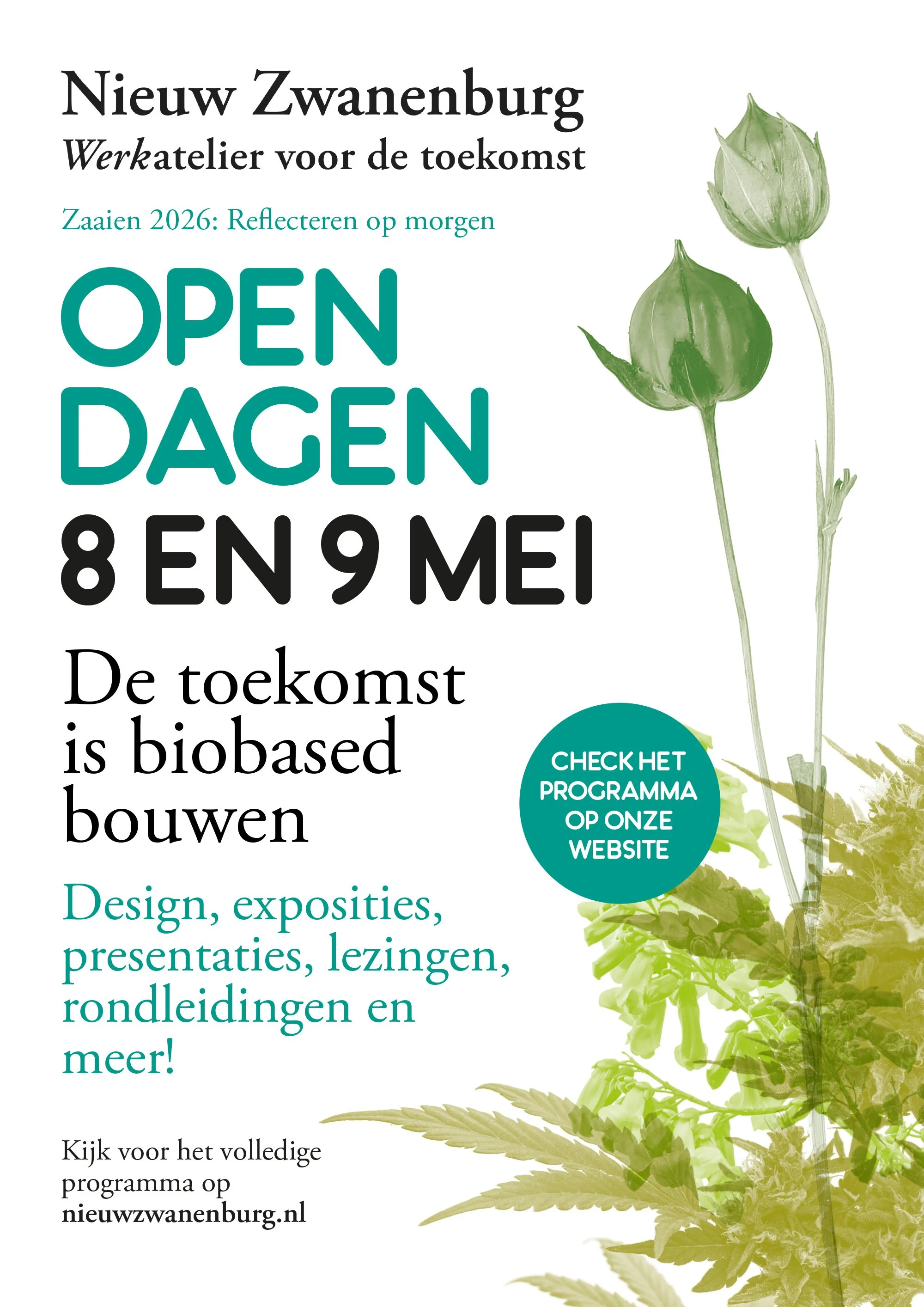 Op 8 en 9 mei openen we vervolgens onze deuren voor iedereen. Tijdens deze open dagen ontdek je een veelzijdig programma met presentaties, exposities en activiteiten rond biobased ontwerp, met werk van nieuw talent en pioniers uit het veld. Of schuif ook lekker bij onze aanschuiftafel – schrijf je (binnenkort) in en geniet samen van een heerlijke lunch!